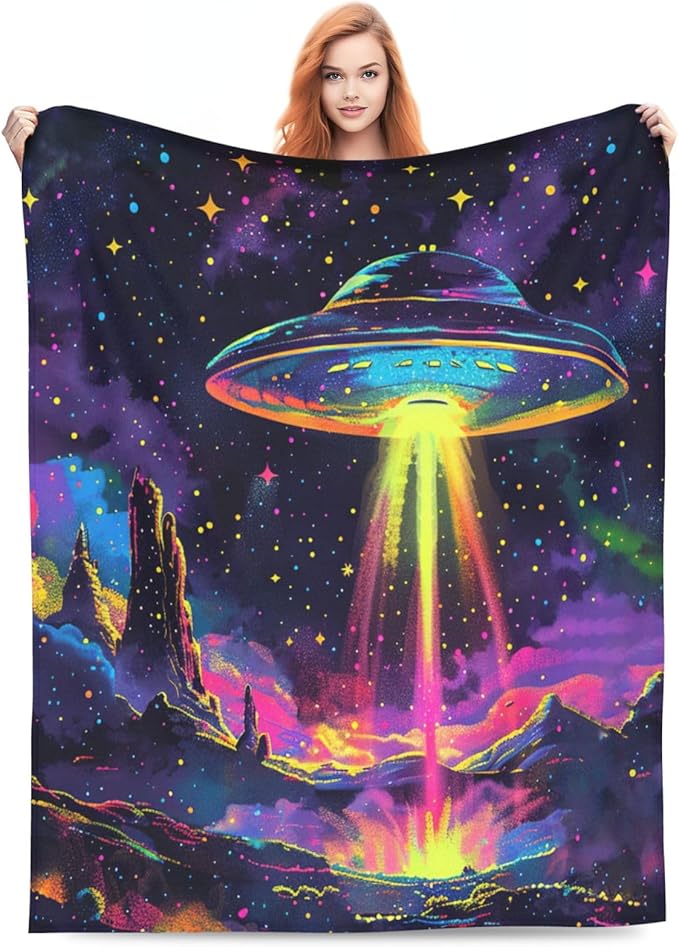 Space Blanket Gifts for Girls Boys Galaxy UFO Decor Throw Blanket Cozy Plush Flannel Fleece Warm Soft Lightweight Fuzzy Winter Blanket for Bed Sofa Couch 40"X50"