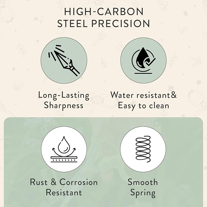 - Plant Care - Gift Ready: These gardening shears are perfect for trimming herbs and flowers with accuracy, thanks to compact, fine-tipped high-carbon steel blades that deliver precise cuts in tight spaces; Ideal for daily use in gardens, pots, and on delicate stems - making them a thoughtful holiday gift or practical Christmas gift for plant lovers, home gardeners, and anyone building their garden tool collection
