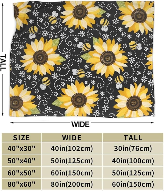 Sunflower Blanket Super Cozy Soft Sunflower Throw Blanket Gifts for Women Girls Warm Plush Fluffy Sunflower Bee Stuff Fleece Flannel Gift Blankets for Kids Adults 60"X50"