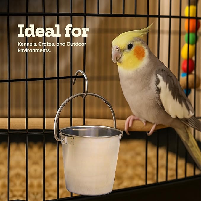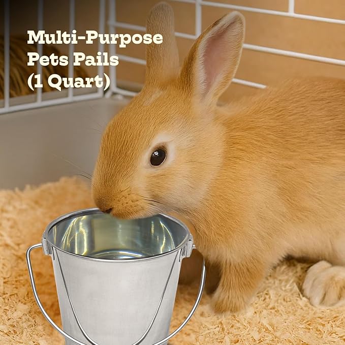 1 quart Heavy Duty Stainless Steel Round Bucket with Handle | 0.25 gal Sturdy Food & Water Bowl for Small Bird Dog Cat & Livestock | Fits kennel Crate Cage Farm | Hanging Utility Pet Pail