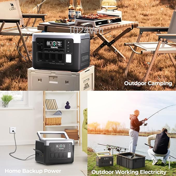 - [Empower Your Home and Adventures] With 1024Wh and 1800W rated power, this device can power 99% of appliances through 11 versatile outlets (4 AC outlets, 2 USB-A quick charge 3.0 ports, 2 USB-C PD ports [20W, 100W], 2 DC outlets, and 1 cigar lighter). It is ideal for outdoor off-grid activities and as home backup power for most appliances, phones, laptops, power tools, cooking utensils, vehicle-mounted products, and remote-controlled aircraft.