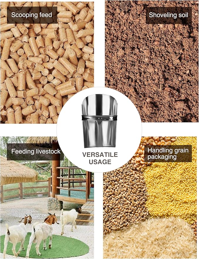 - Versatile Uses: Ideal for feed scoop for livestock, grain scoop, coop scoop,gardening tasks, and in winter, it's perfect for shoveling coal, debris, or spreading salt. This scoop serves a wide range of uses, making it a highly practical tool.