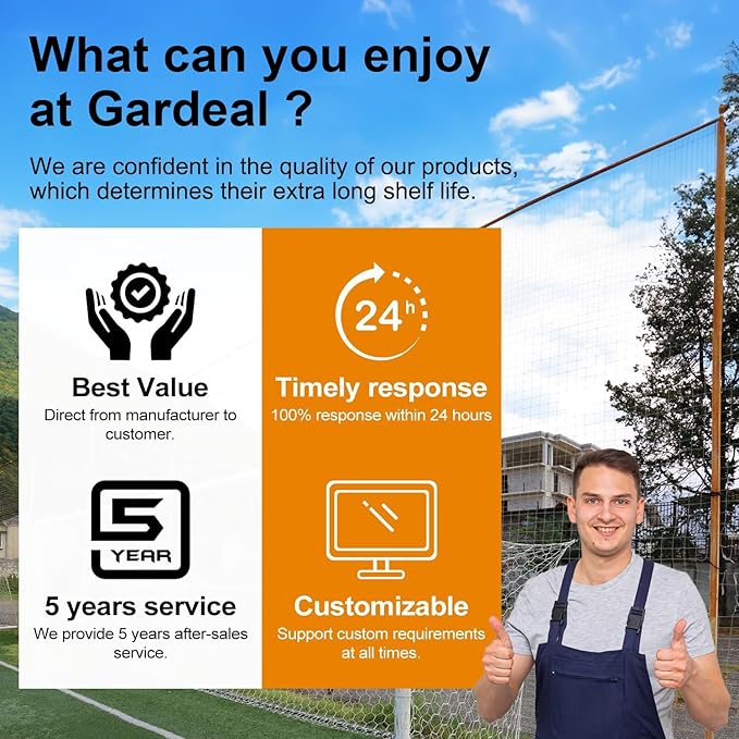 - Gardeal's Galvanized Welded Cage adoptinghot-dip galvanized after welding process technology,double galvanizing process to ensure that all solder joints are coated with zinc,This process improves the corrosion resistance of the wire mesh roll, making it waterproof and rust resistant, sturdy and durable, long-term outdoor use is no problem.
