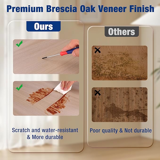 - 【Scratch-Resistant Surface】The premium Brescia oak veneer offers a stylish, scratch-resistant, and waterproof finish. This storage shelves combines elegance and durability, ensuring long-lasting use for your garage organization.