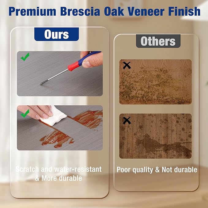 - 【Scratch-Resistant Surface】The premium Brescia oak veneer offers a stylish, scratch-resistant, and waterproof finish. This storage shelves combines elegance and durability, ensuring long-lasting use for your garage organization.