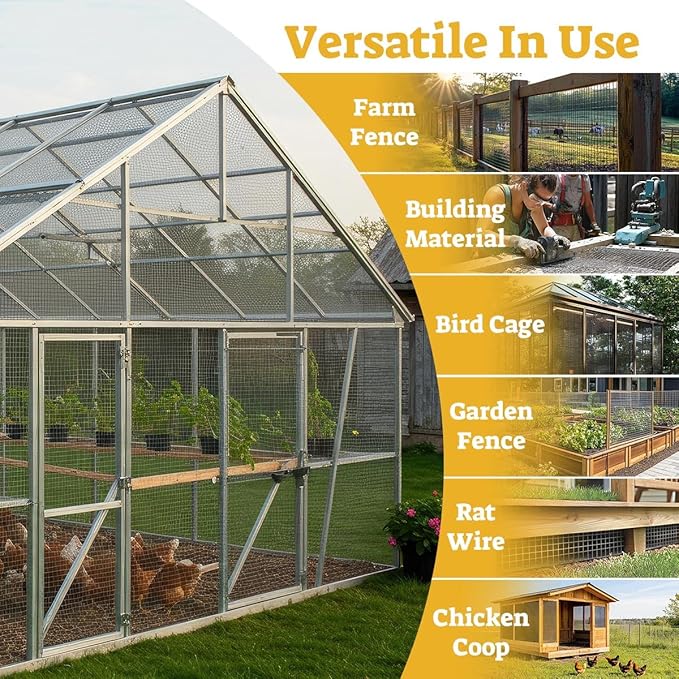 - Versatile & Easy to Customize: The hardware cloth fencing can be easily cut to fit a wide range of projects. Perfect for chicken coop covers, animal enclosures, garden fences, raised garden beds, tree guards, wall decorations, and more. Customize it to meet your specific needs for both indoor and outdoor applications