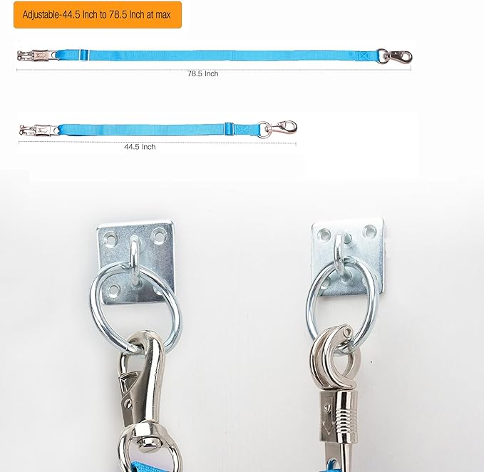 2PCS Cross Ties,Heavy Duty Adjustable Nylon Cross Ties for Horse Horse Trailer Tie with Panic Snap and Bull Snap,Adjustable Length from 44.5-78.5 Inch,Blue