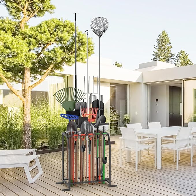Trieez Extra Large Garden Tool Organizer for Garage, NEVER FALL OVER - Yard Tool Organizer Garage for Organization and Storage, Tool Rack for Shed, Outdoor, Tool Stand