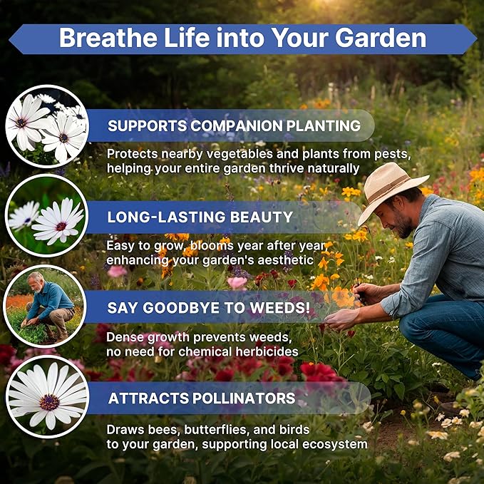 - Easy to grow - Perfect for beginners and experienced gardeners, our cape daisy seed package includes detailed tips for success in any climate or soil type. Simply scan the QR codes on the seed packet to access an online growing guide and learn how to plant and care for cape daisy flowers like a professional gardener.