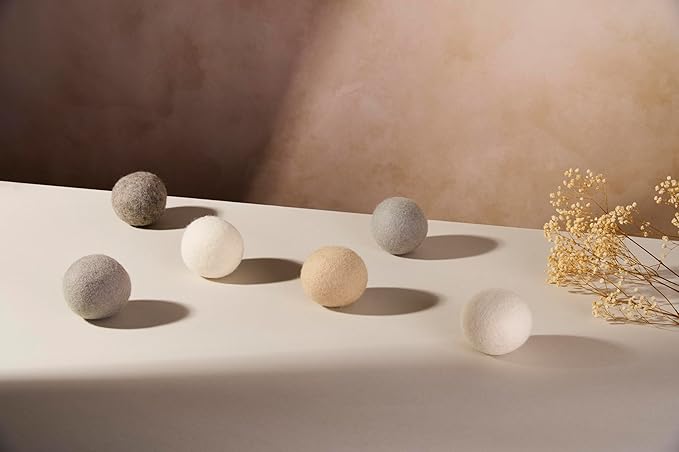 - Natural Wool Dryer Balls: This set of six laundry balls for dryer comes in neutral, earthy colors that add a subtle touch of style to any laundry load. Made from extra thick 100% New Zealand wool, they provide a gentle, chemical-free way to care for fabrics, helping to naturally soften clothing while keeping your laundry routine eco-conscious.