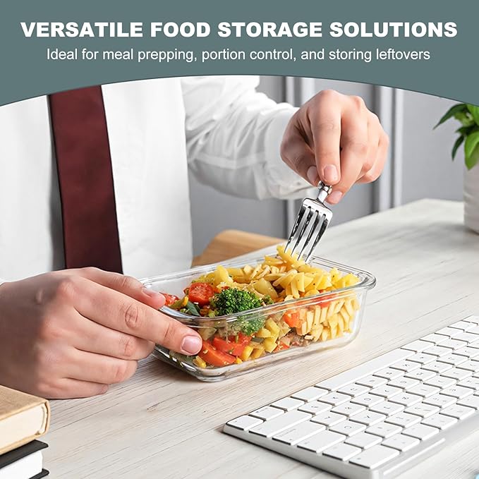 - AIRTIGHT SEAL: Each glass storage container comes with a BPA-free plastic lid featuring a silicone ring that provides a leak-proof seal. This prevents spills and keeps food fresh longer, ideal for carrying meals to work, picnics, or the gym. The snap locking lids are easy to use and won’t break easily.