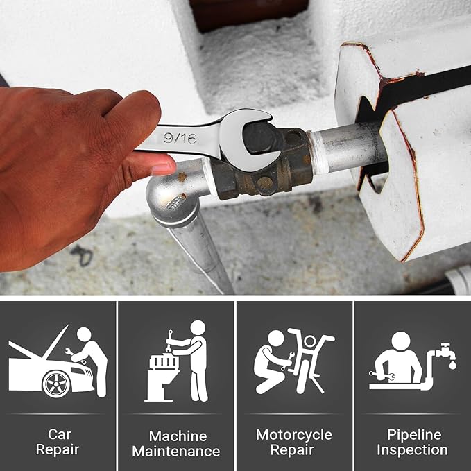 MAXPOWER 9/16 Inch Combination Wrench Set, Professional Open and Box End Spanners with Mirror Finish, Made with Forged and Heat-Treated Cr-V Steel, 12-Point Design