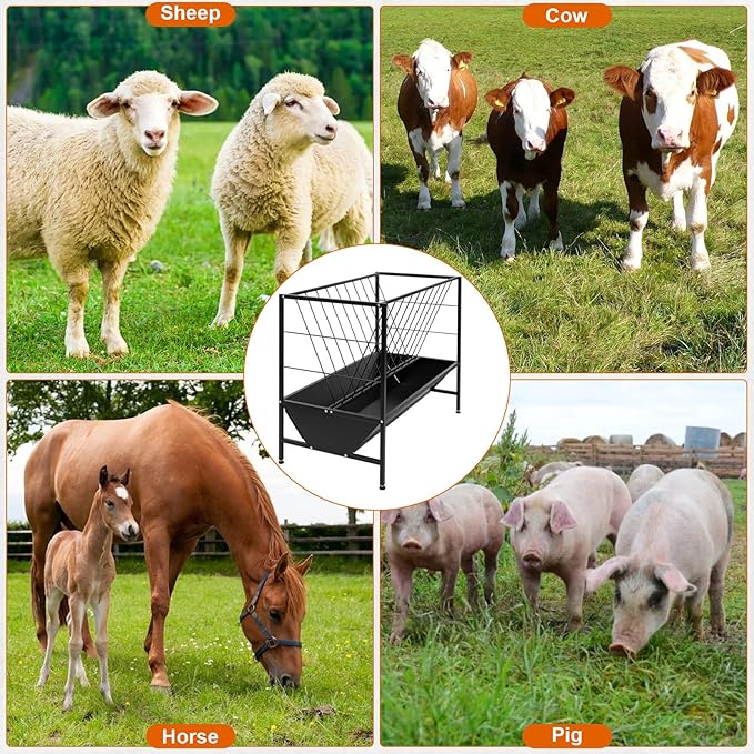- Multiple Application: HomiShare livestock feeder is perfect for people with farm working, such as horse, sheep, cow and other livestock feeding. The hay feeder provide them with fresh and sufficient food. In addition, the feeder can provide food for different animals at the same time , which can be used both indoor and outdoor, such as farm lawn, goat barn, horse stable, goat shed, yard, etc.