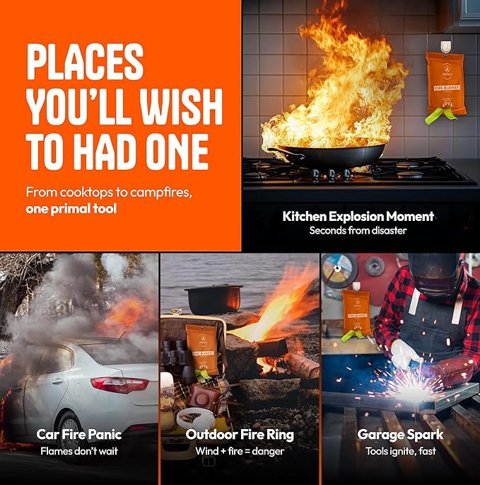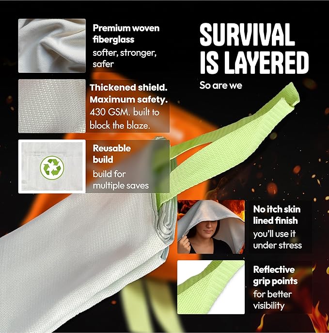 - Fire-Proof, Reusable & Eco-Friendly Design. No chemicals, no mess, no residue. Compact and reusable, this blanket fits seamlessly into any home essentials kit, RV safety pack, or survival gear setup.