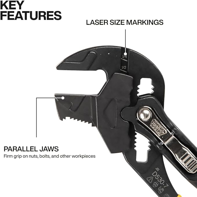 Klein Tools D5307 Plier Wrench, High Leverage Multi-Use Pump Plier with Adjustable and Reversible Double-Sided Jaw, Smooth and Knurled Teeth, 7-Inch