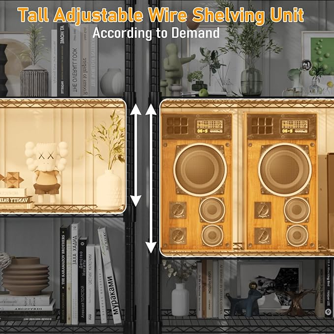 - 【ADJUSTABLE HEIGHT】Each layer of the wire shelf can be adjusted to match the height of your items, optimizing your storage space.Additionally, you can join two storage racks to form a wider unit, providing extra width to meet your needs.No matter your requirements, you can assemble a shelf configuration that fits just right