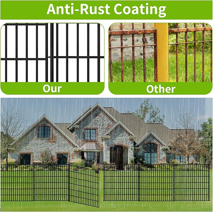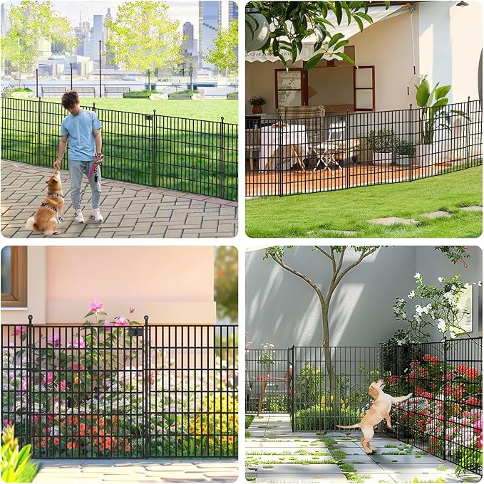 - 【Flexible & Versatile Styling】The dog fence outdoor for yard can be freely added or removed to form any shape you want, such as rectangle, square, round, which can be used to decorate your yard, garden and pathway. The no dig iron fence can meet any of your garden needs.