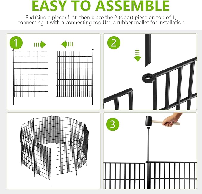 - Easy to Install: The outdoor dog fence comes with metal stakes, simply anchor them into the ground using the included ground stakes. Create a beautiful decorative garden fence easily, saving you time and effort during installation.