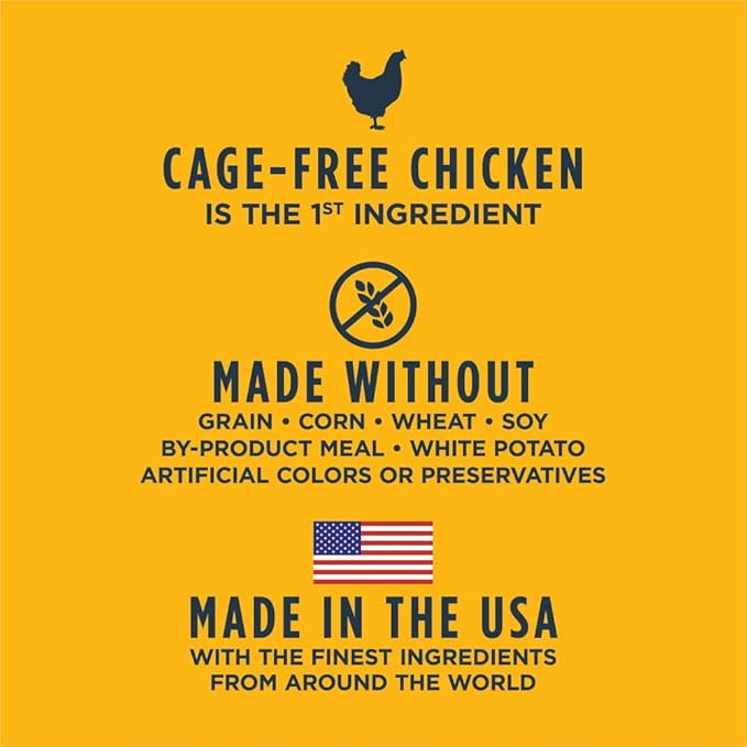 - NUTRIENT-DENSE: Cage-free chicken as the first ingredient delivers protein for strong, lean muscles, with fruits, vegetables, and other nutrient-rich ingredients for balance