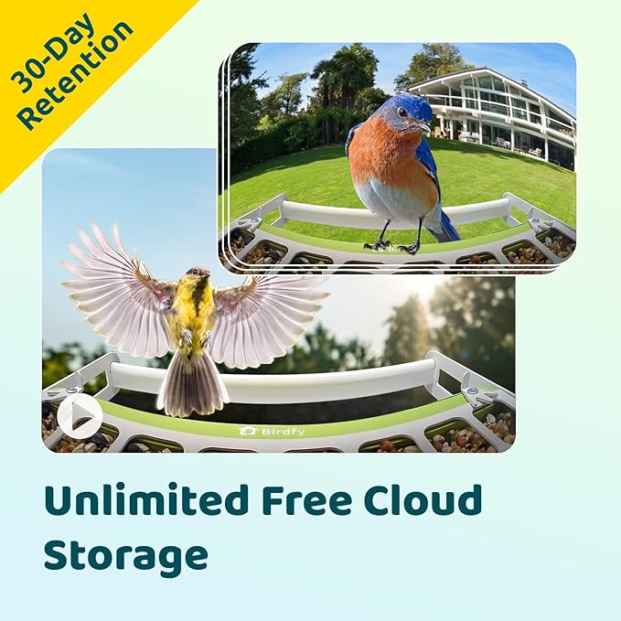 - 1080P CAMERA, SMART AI & SQUIRREL-PROOF DESIGN. Capture every flutter in crisp 1080P HD from the shimmer of feathers to the quiet movements. With full-color night vision, you’ll see birds in natural color after dark, revealing their true hues and delicate details. Birdfy’s smart AI identifies each visiting species in real time and sends instant alerts to your phone. Crafted from premium metal, Birdfy bird feeder with camera keeps squirrels at bay and withstands harsh weather season after season