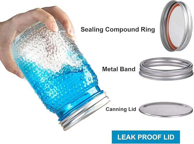 - Tight Seal & Leakproof: The quart mason jars wide mouth got a two-part silver lid. You’ve got the twist-on band and a metal disc with a silicone sealing ring. It locks tight to keep air and moisture out. Zero leaks, zero spills, and your stuff stays fresh foreverrr!