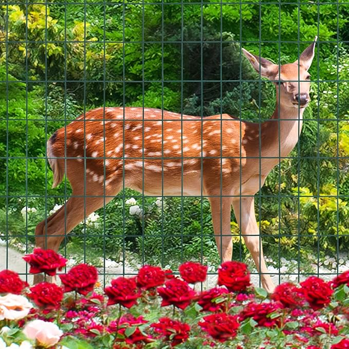 Green PVC Coated Welded Wire Fence 48 Inch x 50 Foot, 2 Inch x 4 Inch 14GA, Garden Border Fencing Roll Vinyl Coating Metal Wire Mesh Hardware Cloth for Yard Vegetable Plant Protection