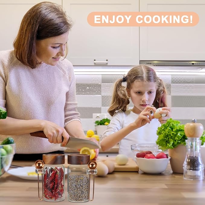 - 【WIDE APPLICATIONS】 Glass kitchen canisters for pantry organization and storage are suitable for storing various dried ingredients to retain their freshness, with clear glass jars, you can easily see inside and quickly find the ingredients you need.Glass jars with wood lids perfect for storing dry food , such as,cookies,dried beans,pepper,oatmeal,jams,chutneys, rice, flour, tea, coffee, biscuits, candy,cheese,flour, sugar, seeds,etc. Keep your kitchen tidy and safe,saving space and convenient .
