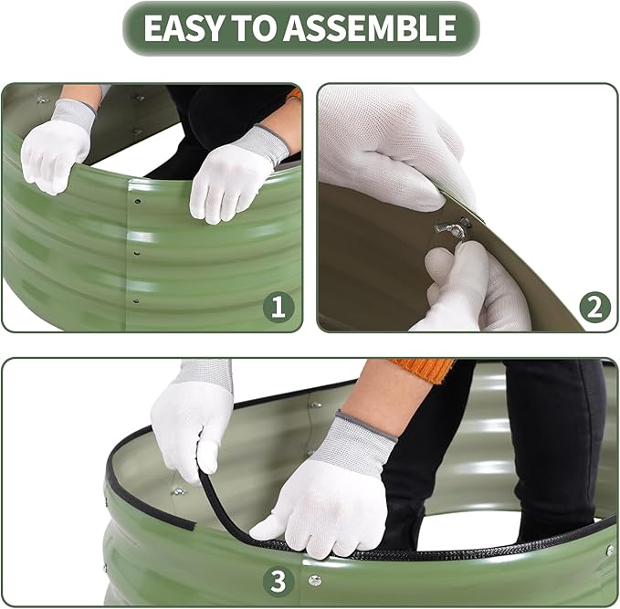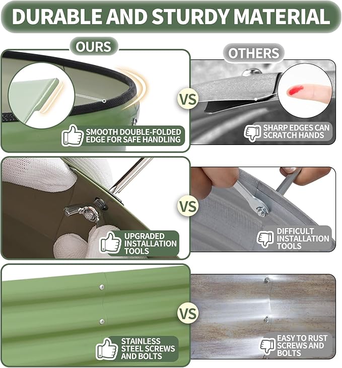 - 【High-Quality Materials & Durable】 Made from 0.7mm galvanized metal panels with double-layer anti-corrosion galvanization, this outdoor raised garden bed features a robust oval-shaped design for added strength and durability. Resistant to rust and corrosion, it provides a long-lasting gardening solution that can be reused for many years, ensuring a sustainable and reliable space for your plants to thrive