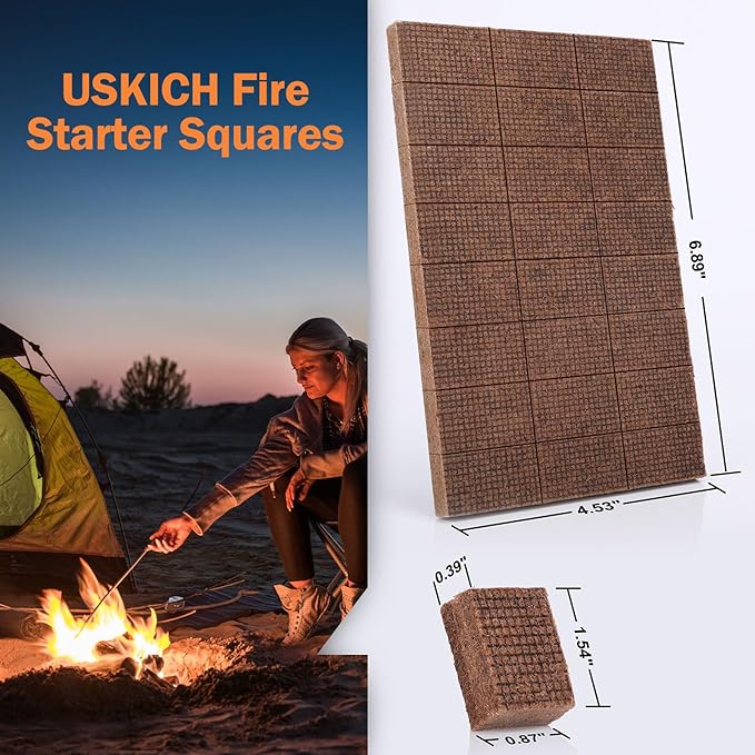 - Natural Formula: They are made of wood fiber+paraffin wax to ignite great fires for your BBQ, fireplace, or campfire. Thanks to natural ingredients, every piece of our fire starter is odorless. So, it's suitable for BBQs and grills. It's also weather-resistant and will withstand rain or heavy wind.