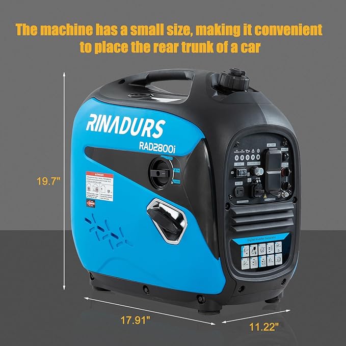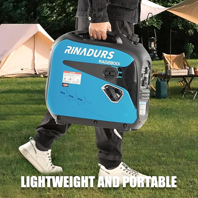 - [Efficient Power] - RAD2800i inverter generator is equipped with a 4-stroke 122cc engine, providing 2500W running power and 2800W peak power, and its advanced inverter technology ensures clean and stable power output (<3% THD), which is perfectly suited for precision electronic devices and outdoor tools, thus providing reliable power supply for electronic devices.