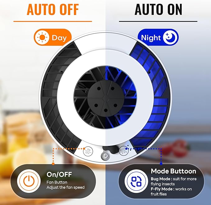 - Automatic Operation for Convenience - The insect trap operates automatically in the dark and turns off in the light, conserving energy and ensuring it works when needed. Manual mode allows for personalized control over the trap's operation.