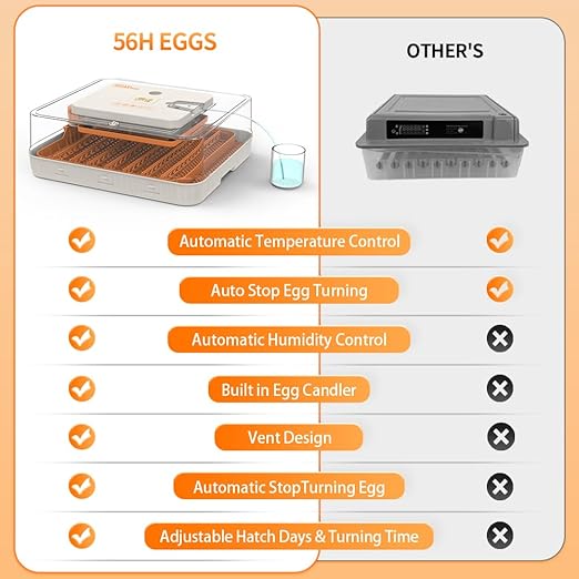 HOWOOlUA 56 Egg Incubator for Hatching Eggs with Auto Turn, Temp & Humidity Control, Built-in Candler Large Capacity Egg Incubator for Chicken Duck Goose Eggs