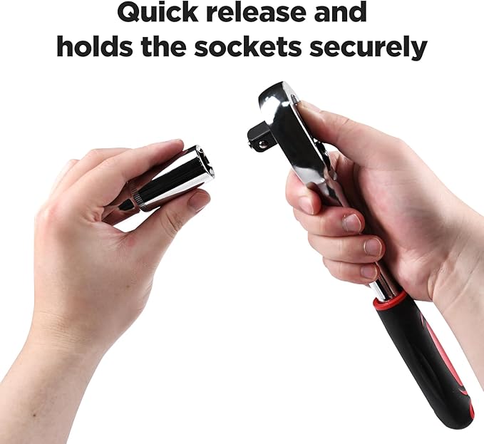 - PROFESSIONAL RATCHET HANDLE - Ergonomic easy-grip ratcheting handle could be quickly released, make you comfortably reverse the switch and let the product exceptional durability.