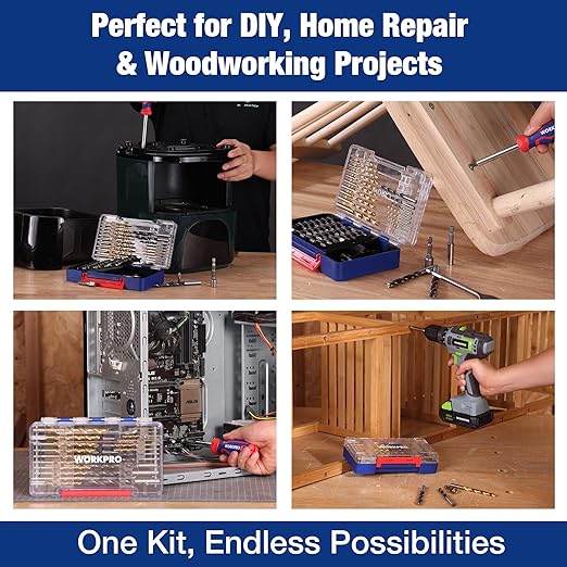 WORKPRO Drill Bit Set, 66-Pieces Impact Driver Bits Set and Screwdriver Bits Set for Screw Driving and Wood Metal Drilling with Storage Case, 1/4" Hex Shank