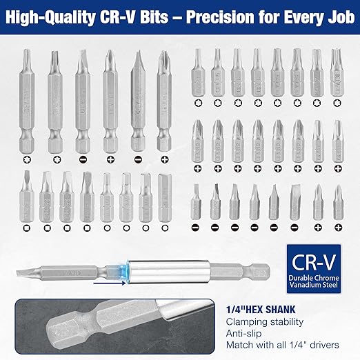 - WIDE COMPATIBILITY: Standard 1/4" hex shank for universal compatibility with most power drills, impact drivers, and manual screwdrivers. Ideal for woodworking, home repair, and general DIY.