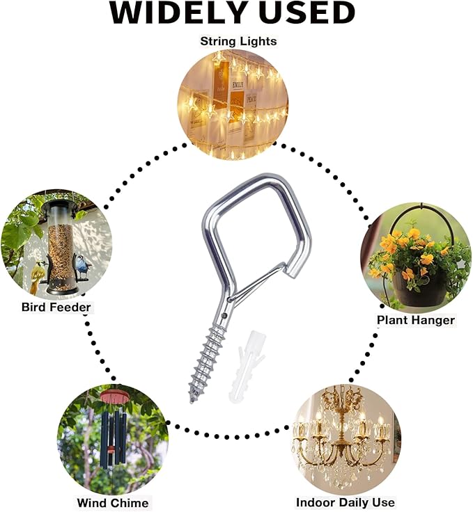 - 🔧 Wide application: This screw in hook is designed specifically for hanging Christmas lights, outdoor string lights, and plants, making it very suitable for indoor and outdoor use.