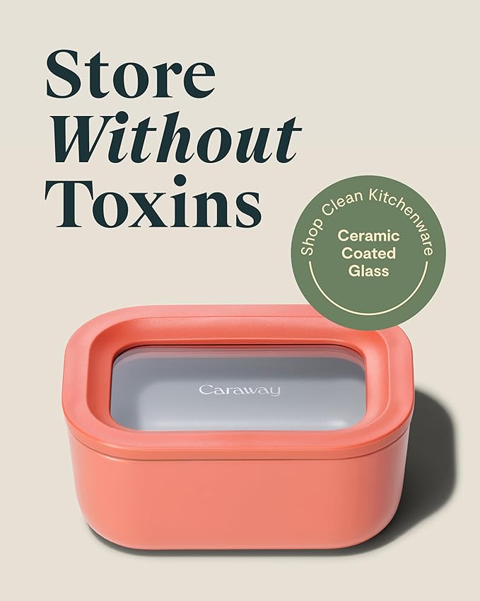 Caraway Mini Rectangle Food Storage Container - 2.6 Cup Glass Storage Container for Food - Non-Toxic Ceramic-Coated Glass - Air Release Technology - Compact & Stackable Design - Perracotta