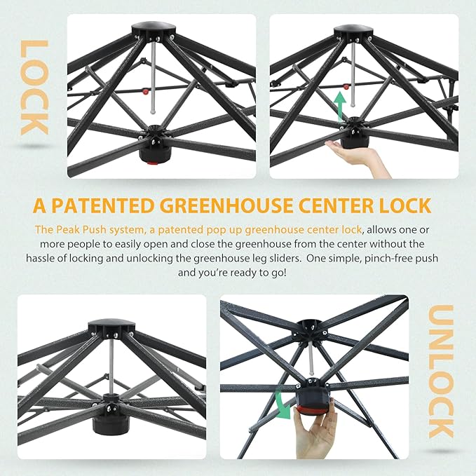- EASY SETUP: This pop up greenhouse with patented center lock technology supports one person setup in seconds. The pre-assembled frame and innovative Peak Push locking system delivers a quick setup. No tools required. Whether you're a seasoned gardener or just starting out, the EAGLE PEAK pop-up greenhouse for outdoors saves you time and hassle