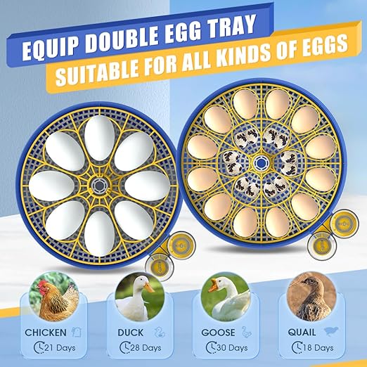 - 【 Auto Egg Turning】 Our egg incubator with automatic egg turning control in every 2 hours. And eggs are heated evenly and improve hatching speed, prevent eggshells and egg trays from sticking. the chicken incubators will automatic stop turning 3 days before hatch eggs to avoid excess turning to enhance the hatching rate.