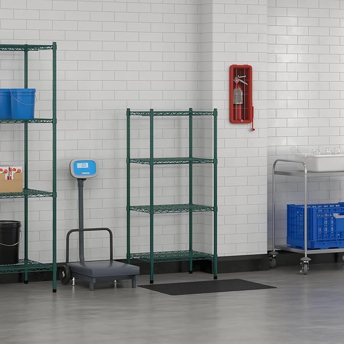 - Places of Usage: With its durable green epoxy finish, this Shelving Kit provides reliable protection across various environments. The corrosion-resistant coating ensures long-lasting durability, even in humid or moist conditions. Ideal for securing inventory in commercial kitchens and dishrooms, storing perishable items in walk-in refrigerators and freezers, or protecting gardening tools and supplies in greenhouses.