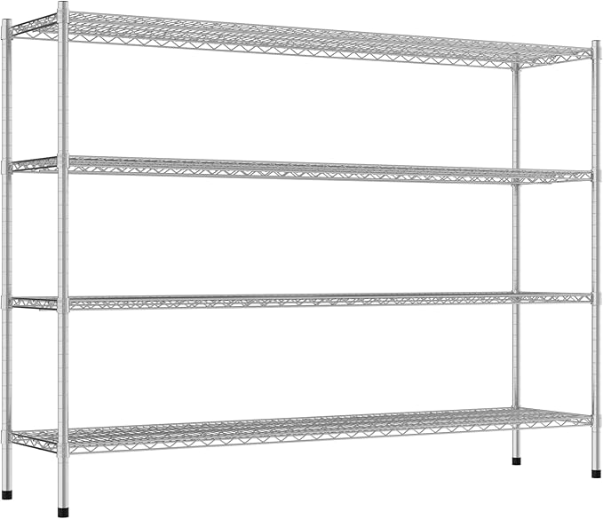 Commercial NSF Listed Chrome Stationary Wire Shelving Kit 18" x 72" x 54", with 4 Shelves Perfect for Warehouse, Walk-in Refrigerator, Freezer, Grocery Store, Restaurant, Dishroom