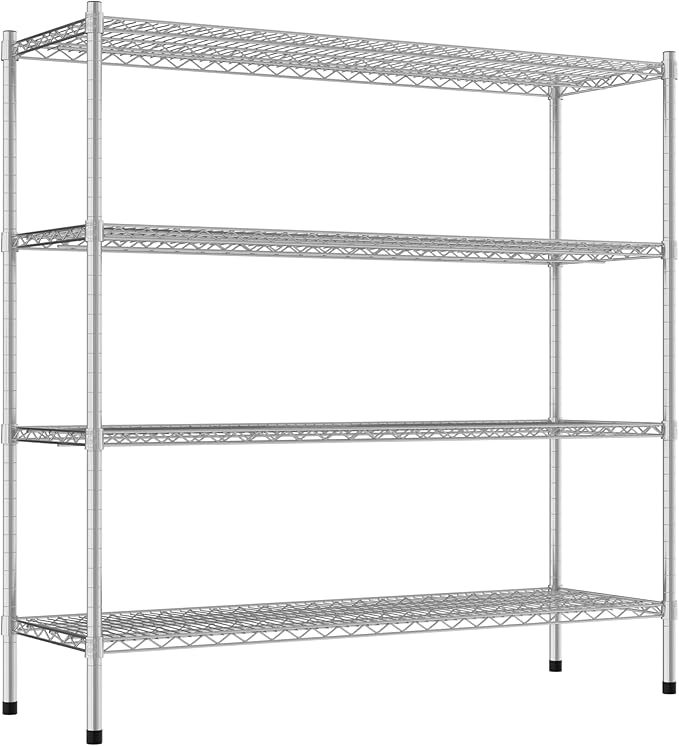 Commercial NSF Listed Chrome Stationary Wire Shelving Kit 18" x 54" x 54", with 4 Shelves Perfect for Warehouse, Walk-in Refrigerator, Freezer, Grocery Store, Restaurant, Dishroom