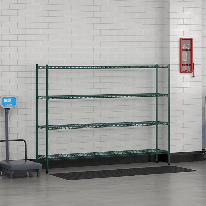 - Places of Usage: With its durable green epoxy finish, this Shelving Kit provides reliable protection across various environments. The corrosion-resistant coating ensures long-lasting durability, even in humid or moist conditions. Ideal for securing inventory in commercial kitchens and dishrooms, storing perishable items in walk-in refrigerators and freezers, or protecting gardening tools and supplies in greenhouses.