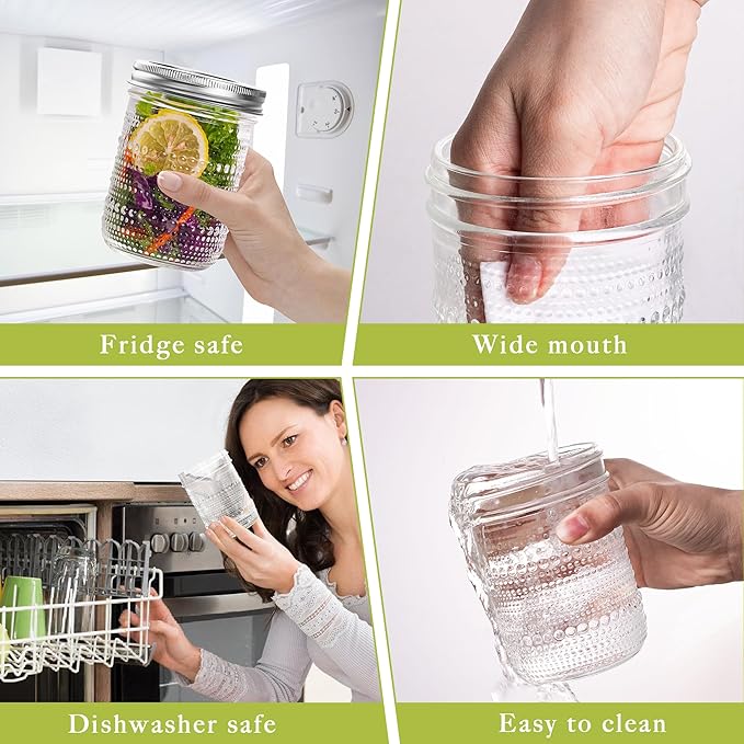 - Exclusive Patented Design Products: WACOI Mason jars feature an exclusive patented hobnail textured exterior design, look stylish and elegant, add color and convenience to your kitchen, cabinets, counter, tabletop and home
