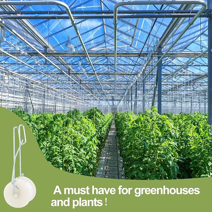 20PCS Tomato Roller Hooks with 49.21FT String and 200PCS Tomato Support Clips for Tomato,Plant, Greenhouse,Flower Vine Twine Crop Greenhouse Trellising Kit