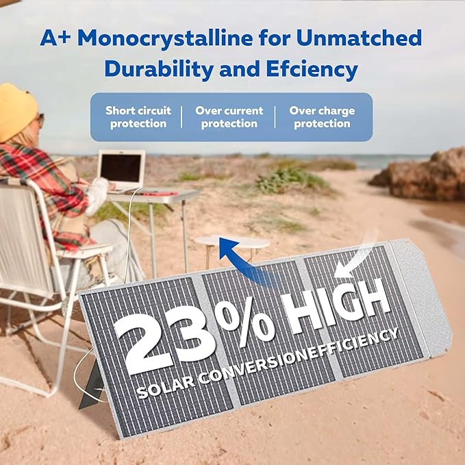 - [Eco-Friendly & Versatile Design]: The solar panel boasts a 23% high conversion rate, and the power station supports solar, car, and AC charging. Together, they deliver an eco-friendly, energy-efficient solution for all your power needs, from outdoor exploration to emergency preparedness.
