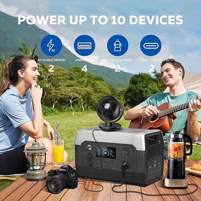 - [High Capacity for Multiple Devices]: Thesolar generator boasts a 1024Wh capacity and can charge up to 11 devices simultaneously, including laptops, phones, and camping lights. Paired with the 200W solar panel, it ensures a reliable power supply for outdoor adventures or emergencies.
