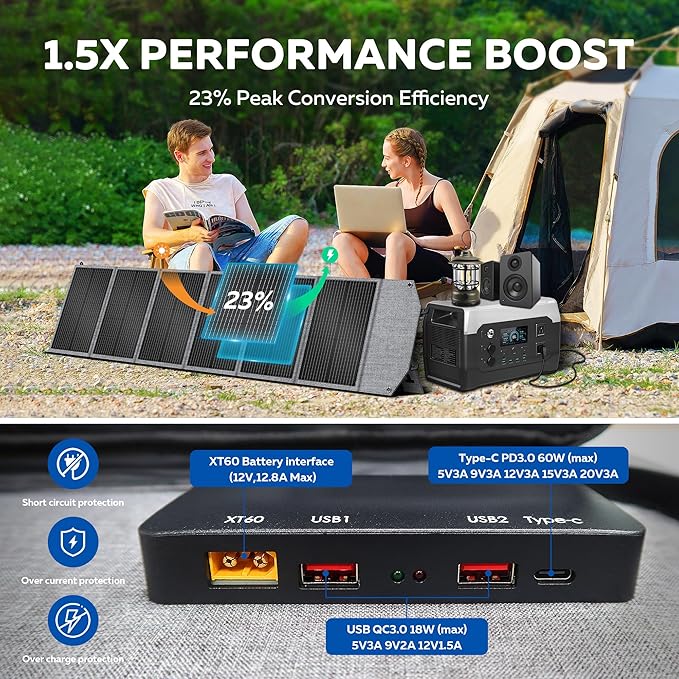 - [Perfect for Outdoor Adventures & Emergency Backup]: Whether you're camping, RVing, or preparing for emergencies, this bundle has you covered. The solar panel is lightweight and foldable, while the power station supports solar, car, and AC charging, making it ideal for various outdoor scenarios.