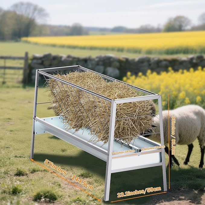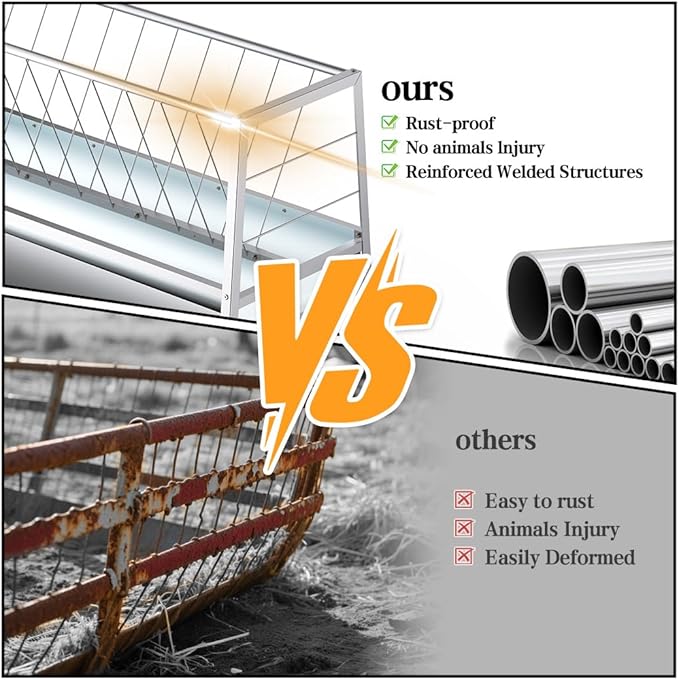 - Buit-to-Last Frame: Buyyah's pasture feeder for livestocks is constructed of robust galvanized steel, withstanding all-weather use for years to come. With reinforced welding process, our 2-in-1 feeder is durable and sturdy.