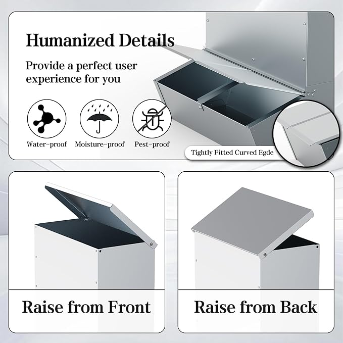 - Humanized Design: The upper top door can be opened from the front and the back sides. If you install it on the back side, it won't disturb the hogs to eat. Besides, we add rolled edges avoid injuries to protect pigs.